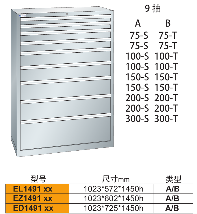 10、同一工具柜柜體,抽屜可選擇純單軌配置、純雙軌配置或單雙軌混合等多種配置。