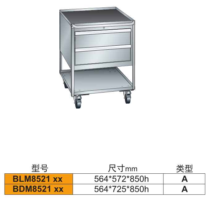 2、由各種型號的工具柜增加頂柜和腳輪等移動部件組成。