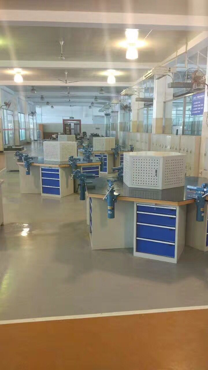 冠久鉗工工作臺是根據(jù)教學(xué)要求研制的,該產(chǎn)品配備的鉗工工具通用化、標(biāo)準(zhǔn)化和專用化,可提高學(xué)生的操作技術(shù)和動手能力。鉗工大多是在鉗工臺上用手工工具操作為主,對工件進(jìn)行加工。手工操作的特點是技術(shù)性強(qiáng),加工質(zhì)量的好壞主要取決于操作者技術(shù)水平的高低,它的工作范圍較廣,具有萬能性和靈活性的優(yōu)勢且不受設(shè)備、場地等條件的限制,因此凡是采用機(jī)械加工方法不太適宜或難以進(jìn)行機(jī)械加工的場合,通常由鉗工來完成,尤其是機(jī)械產(chǎn)品的裝配、調(diào)試、安裝和維修等更需要鉗工,所以說鉗工是機(jī)械制造工廠中應(yīng)用普遍的工種之一,鉗工實驗室設(shè)備也是各大院校、技校不可缺少的實訓(xùn)教學(xué)產(chǎn)品。該實驗室設(shè)備可以完成常用工具的認(rèn)識和使用,錘、鋸、鑿、劃線、裝配、調(diào)試、安裝、維修等教學(xué)工具。冠久鉗工工作臺有六個角六個工位,是由六個工位以弧形方式圍著坐成一圈。其特點是節(jié)省空間適合以小組為單位培訓(xùn)及作業(yè),如此提高工作效率。 鉗工工作臺適合于學(xué)校精工實習(xí)教學(xué)方面和公司工廠團(tuán)體小組協(xié)作完成生產(chǎn)工作。