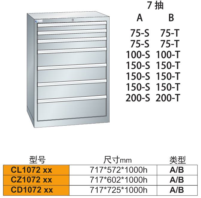 工具柜C1072介紹:工具柜適用于工具、刀具、零部件在生產(chǎn)現(xiàn)場中的定置管理,7抽抽屜式設(shè)計,使你的物品存取工作真正做到準(zhǔn)時、準(zhǔn)確、卓效、低耗。