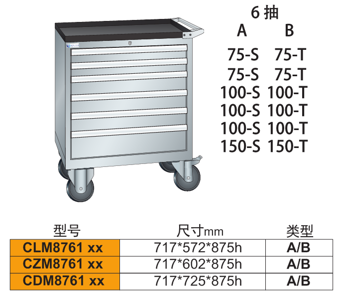 2、由各種型號的工具柜增加頂柜和腳輪等移動部件組成。