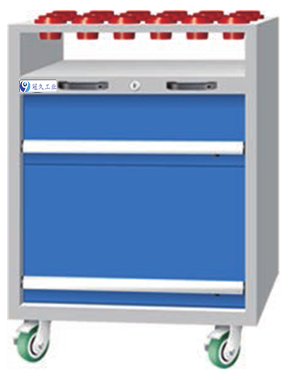 刀具車是存放、搬運(yùn)刀具的裝備,此類刀具車可存BT30、BT40、BT50、HSK63、HSK100等多種型號(hào)的刀具。多邊成型的整體式側(cè)板上有模數(shù)化的人字孔,可將刀座按水平或15°、30°傾斜放置,方便多種刀具的存取。 高強(qiáng)度腳輪,車前為兩個(gè)定向輪,車后為兩個(gè)萬向帶 剎車輪,推行平穩(wěn),方向性好,剎車固定后不會(huì)滑動(dòng)。