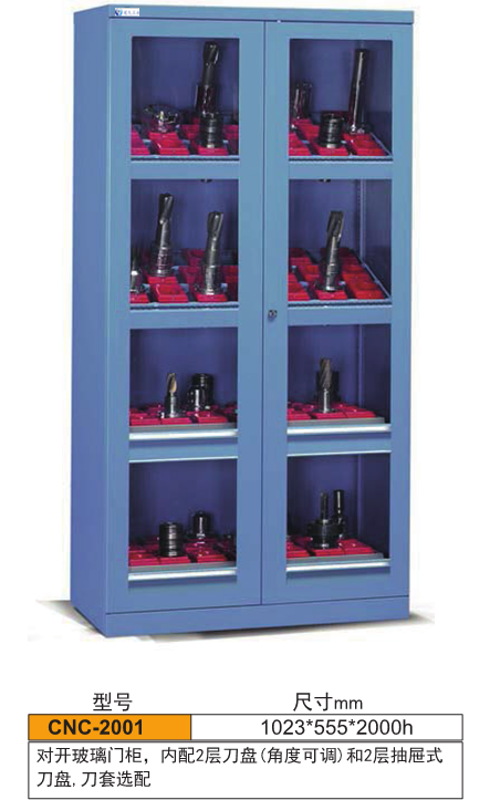 刀具柜,是專門用來存放各種車床上常用刀具的柜子。刀具柜的柜體一般采用冷軋鋼板制成,堅固耐用。刀具柜內(nèi)常有3-5個橫檔可拉抽屜,抽屜內(nèi)有ABS材質(zhì)的刀具套,防滑防油,以便刀具自由組合式的存放。刀具柜一般都為雙門對開式,柜體裝有可調(diào)式腳墊,柜體可調(diào)整高度,柜子防滑防潮。刀具柜常用在工廠機加工中心,便于刀具的集中管理,取用方便。