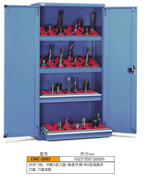 刀具柜,是專(zhuān)門(mén)用來(lái)存放各種車(chē)床上常用刀具的柜子。刀具柜的柜體一般采用冷軋鋼板制成,堅(jiān)固耐用。刀具柜內(nèi)常有3-5個(gè)橫檔可拉抽屜,抽屜內(nèi)有ABS材質(zhì)的刀具套,防滑防油,以便刀具自由組合式的存放。刀具柜一般都為雙門(mén)對(duì)開(kāi)式,柜體裝有可調(diào)式腳墊,柜體可調(diào)整高度,柜子防滑防潮。刀具柜常用在工廠機(jī)加工中心,便于刀具的集中管理,取用方便。
