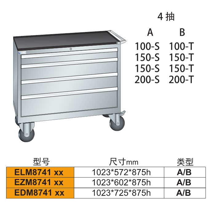 2、由各種型號的工具柜增加頂柜和腳輪等移動部件組成。