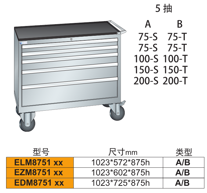 3、外型尺寸的高度:重型工具車為所選用的工具柜的高度加上140mm;