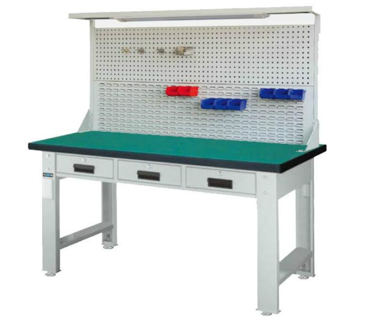 標(biāo)準(zhǔn)重型掛板工作臺(tái)桌面厚度50mm,可平均荷重1000-2000kg。 組合式設(shè)計(jì),拓展性強(qiáng)