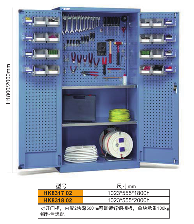 5、柜體門內(nèi)板上帶有方孔和百葉掛板、可掛各類物件及工具。