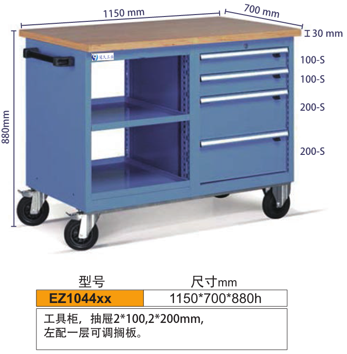 1、拓展工具車是在標(biāo)準(zhǔn)工具柜的基礎(chǔ)上設(shè)計(jì)而成以更小的空間更加低的成本實(shí)現(xiàn)更大的存儲(chǔ)空間