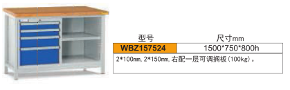 工作臺介紹: 工作臺采用優(yōu)質(zhì)冷扎板精工制作而成,堅固的工作桌框架,牢固平穩(wěn),可使工作桌承重1000kg;多種工作桌面選擇,可配合不工使用的要求; 工具吊柜(箱),側(cè)柜(箱)燈架,調(diào)節(jié)腳杯,外形美觀;層板,抽屜質(zhì)量上乘,承重大,抽屜內(nèi)可根據(jù)需要任意分隔;節(jié)約空間,適用性強(qiáng)